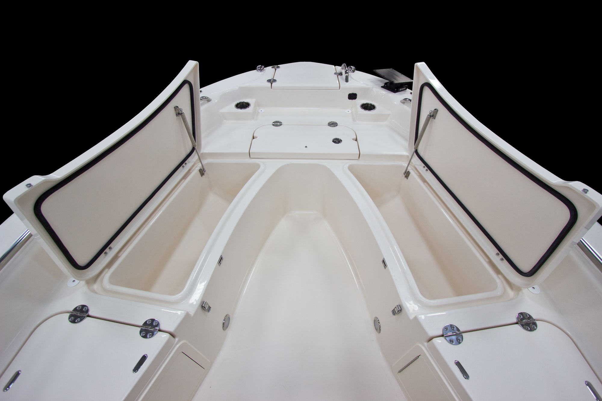 - Dual 74-quart (70 L) fish boxes under the port and starboard bow seats