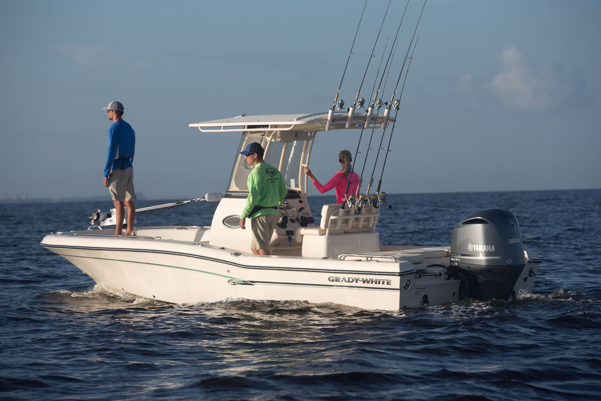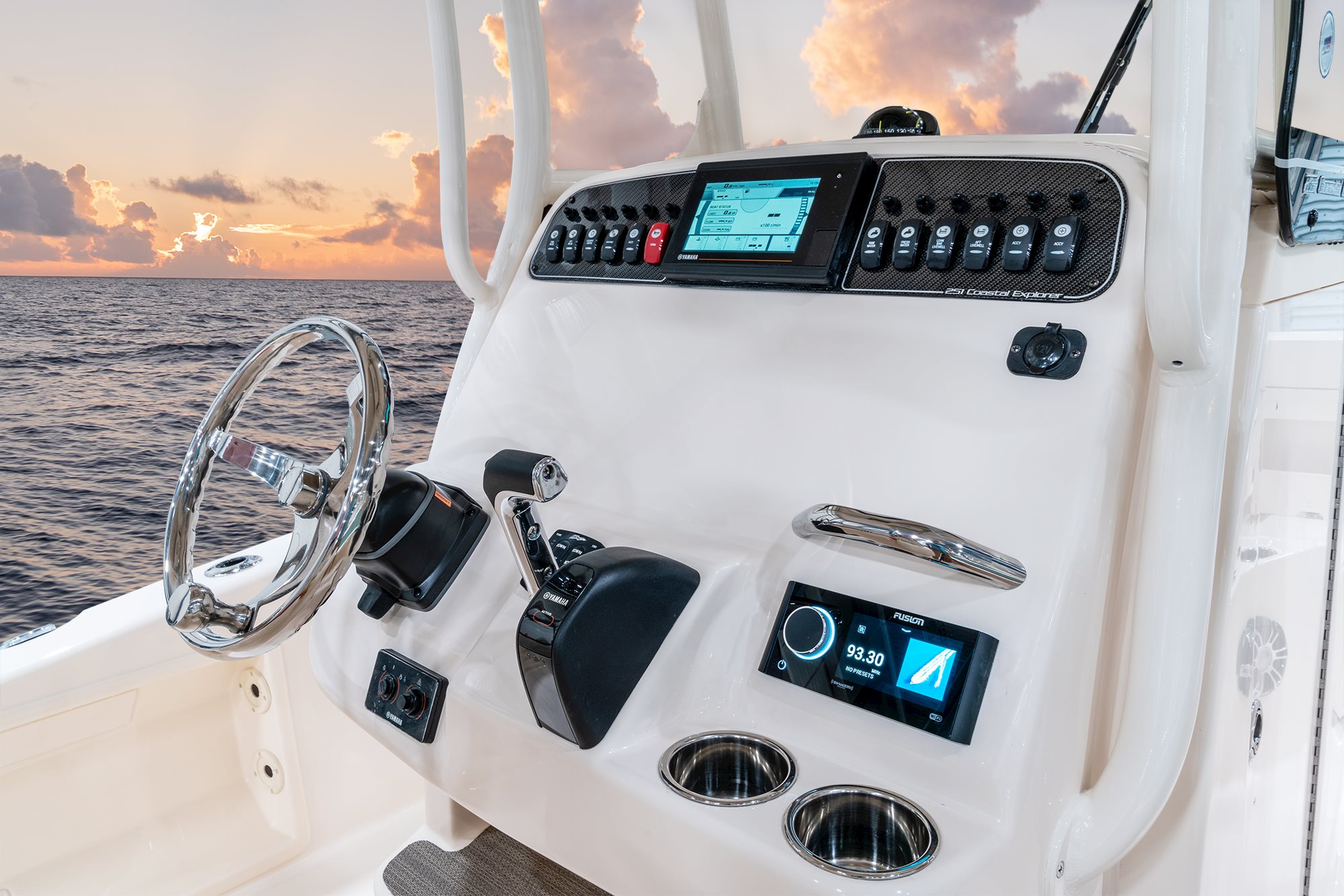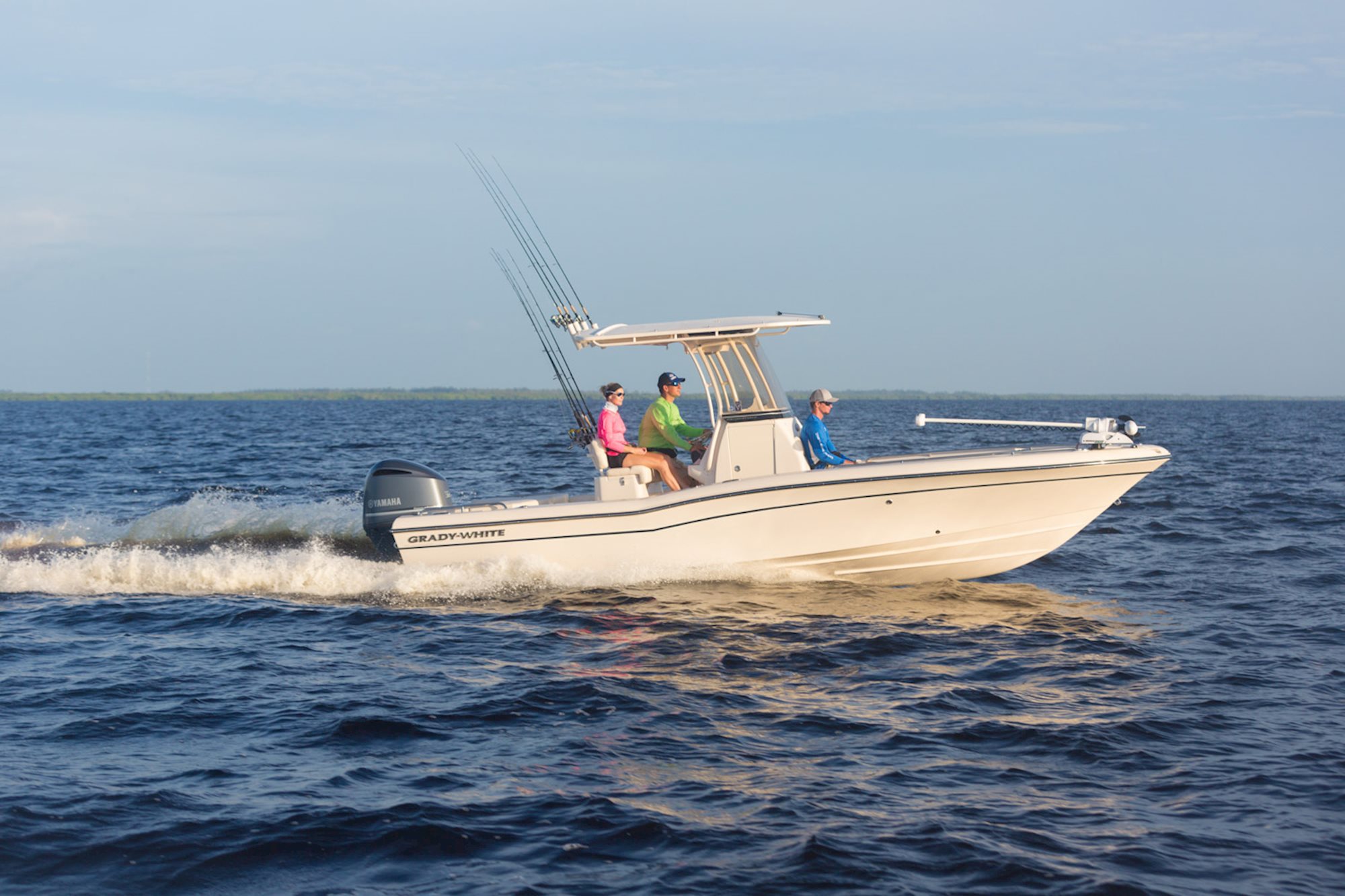 When it comes to versatility, it seems that the 251 CE has both coastal fishing and coastal watersports boating covered hands down. She’s also a comfortable boat to be on in these locales. Because she is not designed for offshore, bluewater work, her bottom does not have to be as deep, nor does her freeboard have to be as high, among other things. That means there can be a considerable savings in materials, labor, and therefore, cost. When we compare the 251 CE with three other 25-footers in Grady-White's other series offerings, we find that she is as much as 900-lbs. (408 kg) lighter. That, in a nutshell, goes a long way to explaining why she can also be less expensive than the other Grady-White boats this size. Because she is purpose-built, the wise consumer can take advantage of this cost savings if their application is a match.