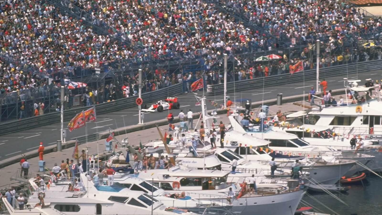 Here we can see that the yachts are clearly starting to take centre stage, with McLaren Honda driver Alain Prost of France racing past them – he finished in first place that year.