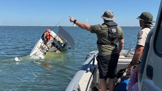 The commission's North Central Regional Dive Team was heading toward a previously located capsized boat when they saw another vessel experiencing mechanical trouble on 13 October. A nearby boater called the officers over the radio to ask for help.