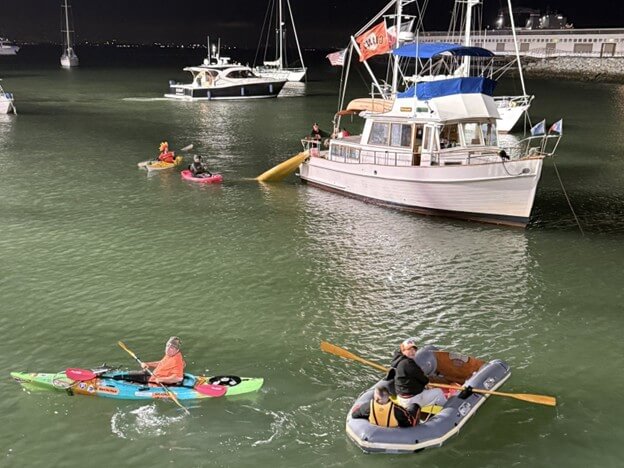According to local news reports, the kayakers fell overboard around 8:30 pm and were quickly rescued by nearby kayakers and a private boat prior to the San Francisco Fire Department’s arrival on the scene.
