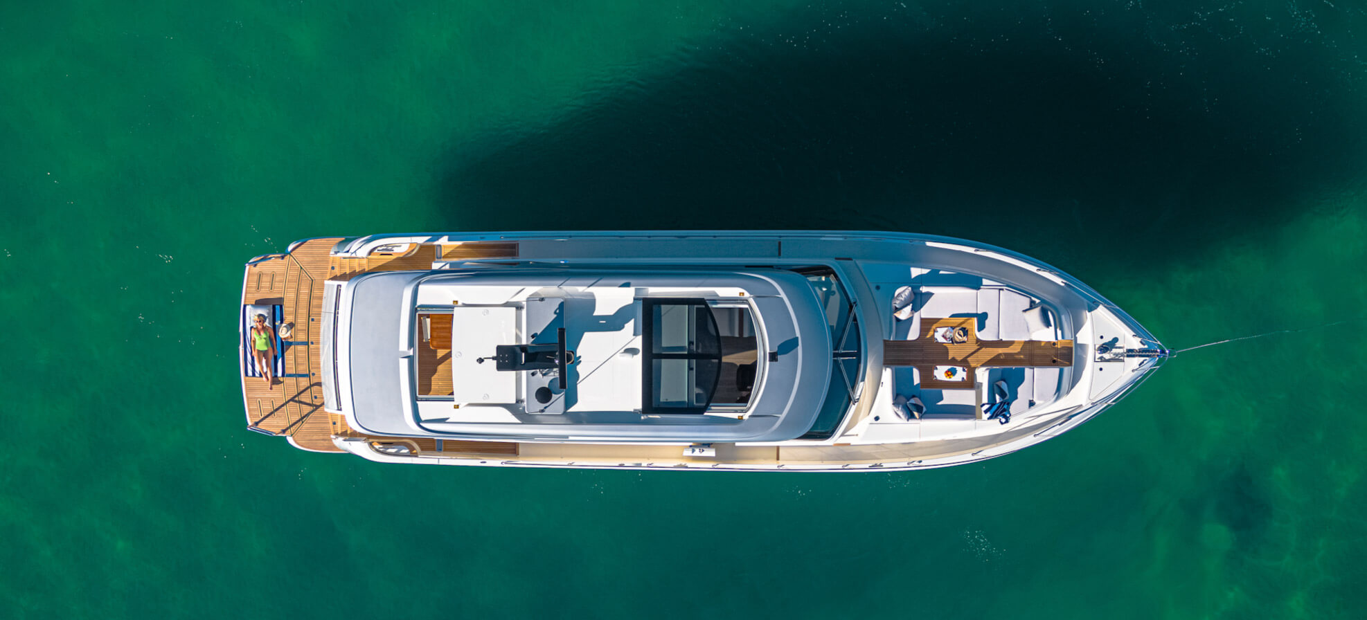 “It is important to think about ‘swing room’ or the diameter of the circle your Riviera could create over time as it moves around the anchor point, pushed by wind, current and tide. You don’t want to find that, although you are anchored safely away from a rocky shore or far enough away from other boats, a change of wind or tide puts you at any risk.