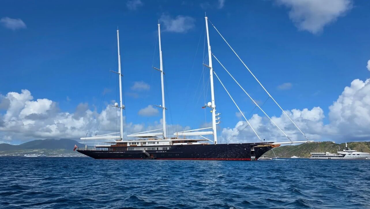 Koru joins many of the world's largest superyachts as they flock to the Caribbean and St Barths for Christmas and New Year's Eve, anchored in the warm Caribbean waters of St Kitts & Nevis. The world's largest sailing yacht is accompanied by her trusty support vessel, the 75-meter Damen Yachting build Abeona, which can be seen in the background. According to BOATPro, there are 16 yachts currently in St Kitts & Nevis as of 23 December 2025, including the recently delivered 111-meter Oceanco yacht DreAMBoat, 80-meter Nobiskrug Artefact and 60-meter Amels Entourage.