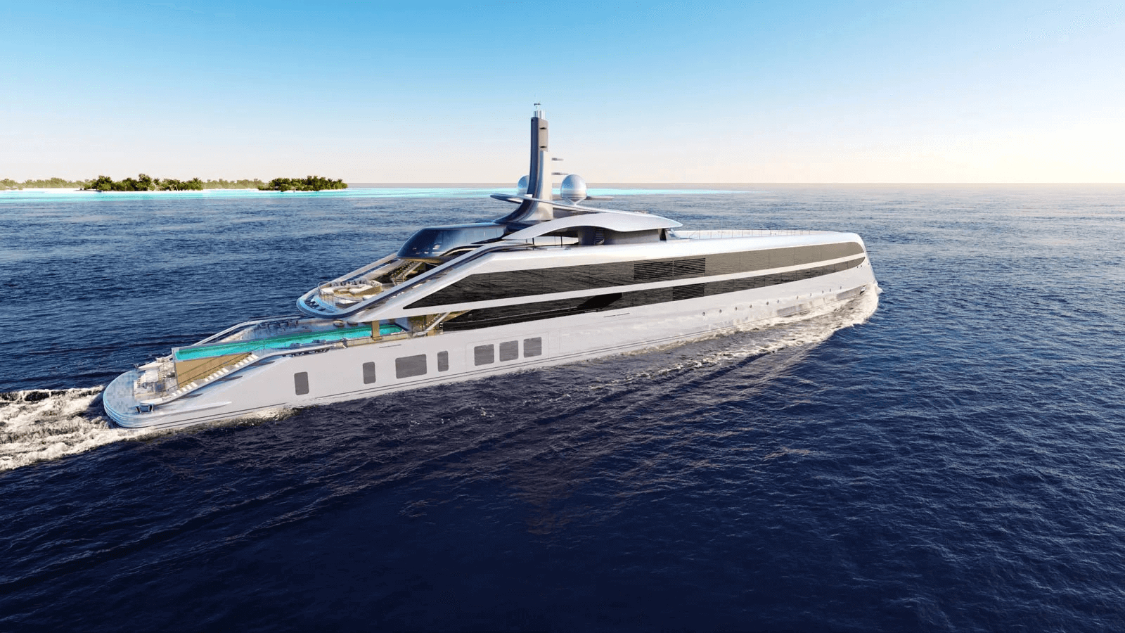 In July, German shipyard Dorries Yachts unveiled the "Nest", the standout observation platform on its 113.5-meter Project Arwen. Under construction in Bremerhaven and set to launch in 2026, she will serve as the flagship of Dorries Yachts. Her design stems from the drawing boards of Pindaros and Andy Waugh Yacht Design, with naval architecture by Azure Yacht Design and Naval Architecture. Renderings revealed in July 2024 showcase an extensive list of amenities, including a 20-meter long swimming pool (which can be hydraulically raised to extend the deck area), a multi-level spiral staircase, a helipad and a gym.