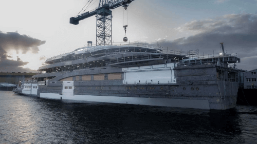 The yacht, which is expected to have a gross tonnage of around 9,000 GT, is one of Lürssen's first projects to use the builder's new slipway which is able to accommodate much heavier loads.