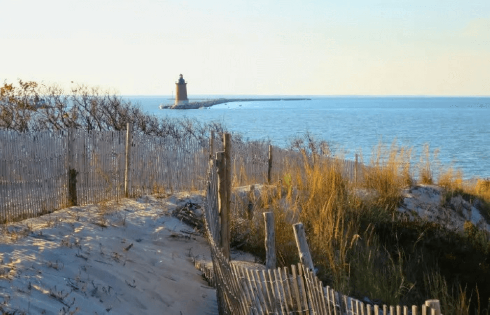 Cape Henlopen’s pier, a relic from Fort Miles’ World War II operations, offers 24-hour access to fishing in Delaware Bay. Several observation towers from WWII also remain within the park, and climbing to the top of Tower 7 provides stunning views of the Atlantic Ocean, Fort Miles and the surrounding dunes and woodlands. The campground is set among a sandy sparse pine forest and includes 20 tent sites adjacent to the Walking Dunes Trail.
