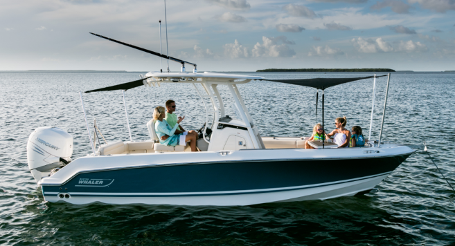One of the advantages of being the latest boat in a popular range — such as 23’ (7.01 m) center consoles — is that the engineers and designers get to survey the competition and incorporate all of the best current ideas. One would think that with the genre being more than 50 years old, there would be a commonality of attributes, and that has happened to a great degree. But Boston Whaler, which has one of the largest engineering staffs in the business, seems to continually refine an already good product. The latest addition to Boston Whaler’s Outrage series, the 230 goes farther to meld cruising functions and family features into a basic design originally intended for meat fishermen. That’s because the company’s customer feedback is pointing Whaler in that direction.