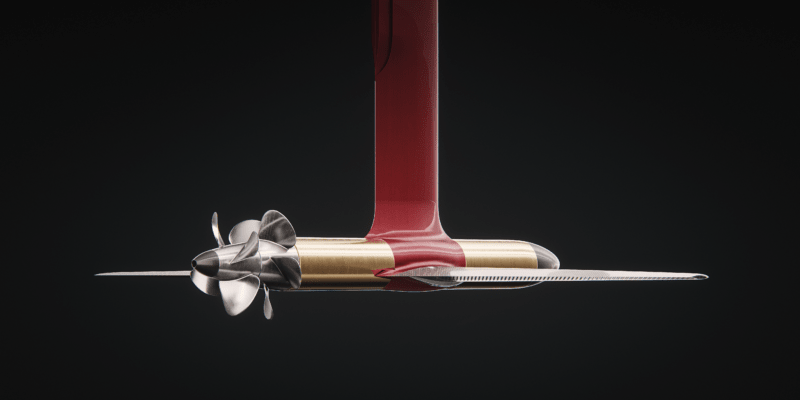 Hasselkog explained that the engineering challenge was to make the electric motor compact enough because they need to have a small diameter to create minimal drag. Candela opted to increase the rpm and lower the torque to boost the C-Pod’s power density. The solution was to split the thrust needed between the two propellers. This allows for smaller-diameter props spinning at higher rpm, which suits the motor’s underwater position. The C-Pod’s weight is listed at 57.32 lbs. (26 kg).