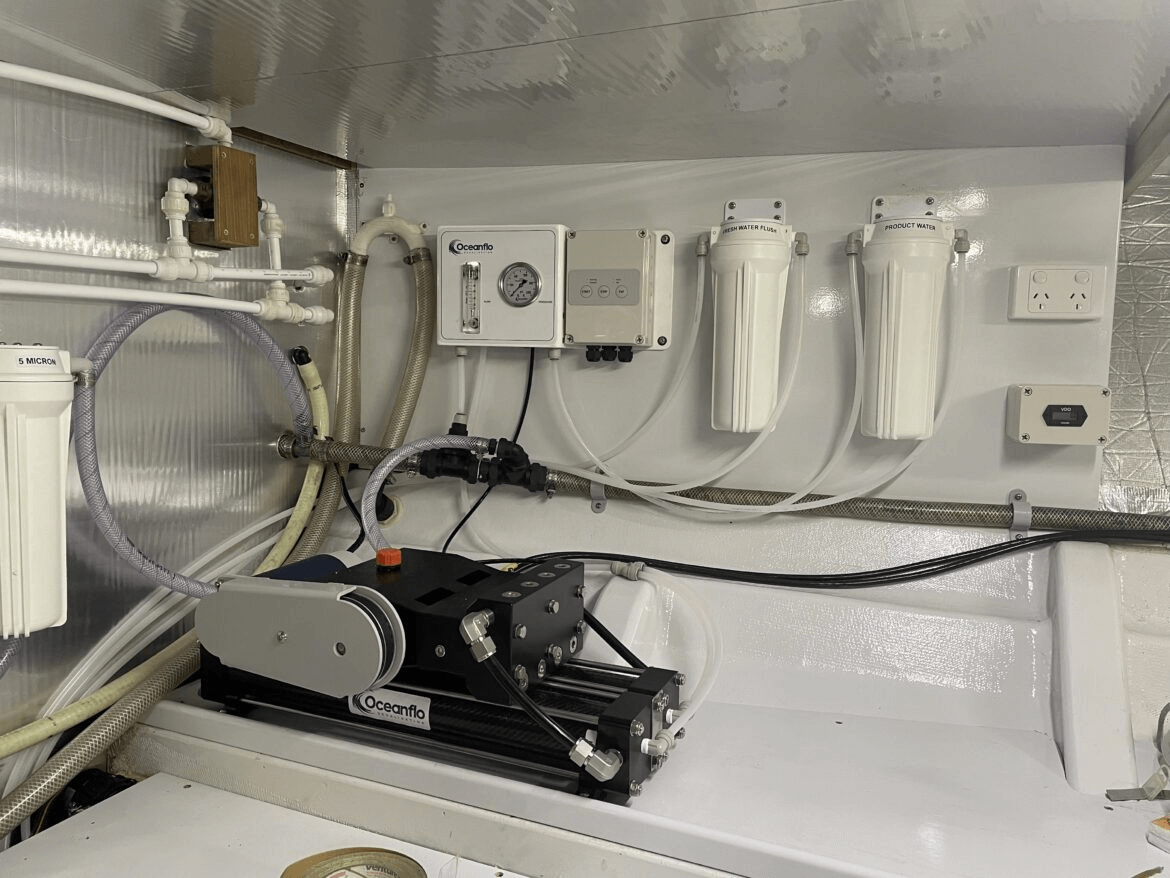 The general rule is about 50 litres per person per day, then double it because with more fresh water onboard, you will find more ways to use it, eg, adding a washing machine or washing salt off the boat’s windows. Desalinated water is tasteless and not to everyone’s taste, but, unlike town supply, it has no minerals so it doesn’t leave residue on decks and windows as it dries. For the same reason, water from a watermaker doesn’t result in calcification in the heating elements of the hot water cylinder. And, if it is used to flush the boat’s head, there will be less build-up of calcium in the sanitation hoses. So, it is likely you will quickly find more uses for desalinated water, assuming you have enough tankage to store it.