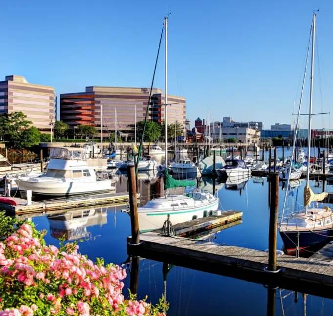 Just steps from the Harbor Point Boardwalk, this 34-slip marina accommodates boats up to 120 feet for seasonals and transients, plus access to top-tier amenities like watersport rentals, free water-taxi rides and the only fuel facility available in Stamford, the Fuel Dock at Hinkley Yacht Yard. Check out additional marinas at Harbor Point properties located throughout Stamford such as Harbor Point East and West.