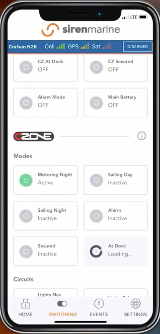 Adding Siren Marine remote connectivity to a CZone-equipped vessel requires a configuration update from a certified CZone installer. Siren says its module is easy to install, requiring a power source and connection to the vessel’s NMEA 2000 network. The Siren mobile app will automatically popular CZone circuits and modes as they appear on a CZone display screen and a user can choose the switches he wants to see on the app’s home screen.