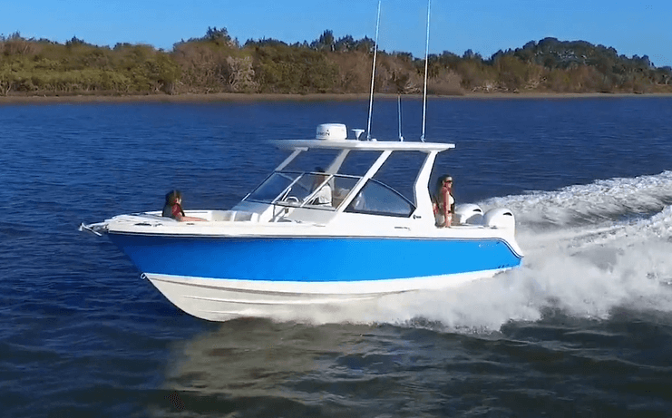 We think the Edgewater 262CX makes an ideal Goldilocks club boat, because she’s not to small and not too big – she’s just right! At 26’ with twin 200-hp outboards she’s easy to maneuver around the dock and has redundancy offshore. Ironically, most twin-engine boats in this class actually burn less fuel than a large single. (They also go faster.)