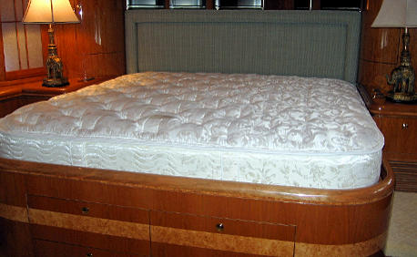 Another attractive and easy décor addition to your stateroom? An attractive custom upholstered headboard. Austin Burkett, marine sales manager for Schrader Mattress, recommends headboards for boats up to 40’ (12.29 m) LOA use marine-grade fabric only. Today, marine-grade fabrics, such as Sunbrella, come in a wide variety of colors, prints, and patterns. For boats that have a continuous air conditioning system, Burkett says most any fabric will work. “We use Ultraleather and other brands of faux leathers as well as vinyls,” he says.