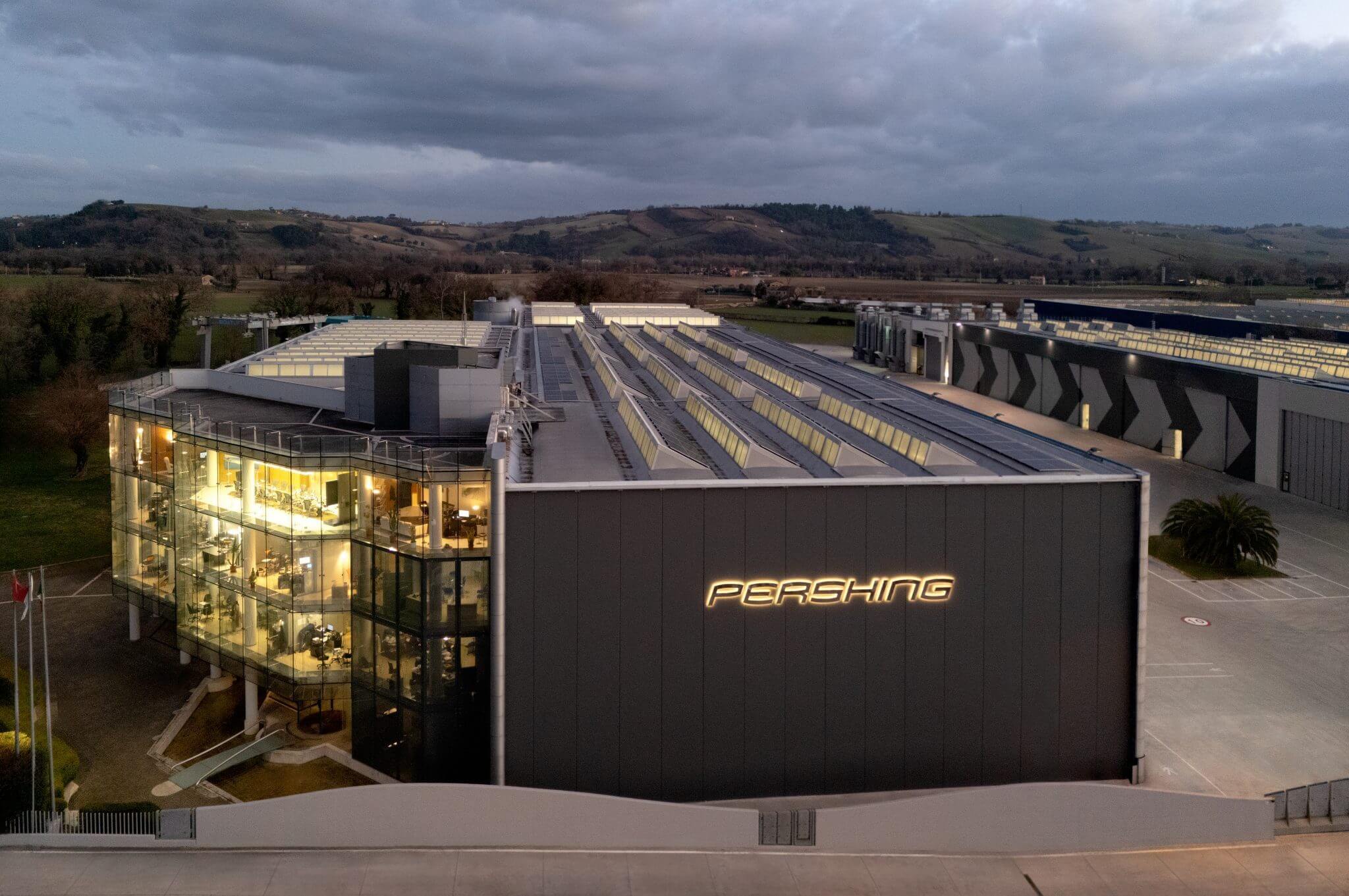The brand's pinnacle achievement is the Pershing 140, its first superyacht, built entirely of aluminum at the Ferretti Group Super Yacht Yard in Ancona. All Pershing yachts, from concept to completion, are produced at the state-of-the-art 84,000-square-meter facility in Mondolfo, Italy. The facility boasts advanced technology, including a dry painting process certified by PPG that delivers a luxury car-like finish, ensuring every vessel meets the highest standards before it ever touches the water.