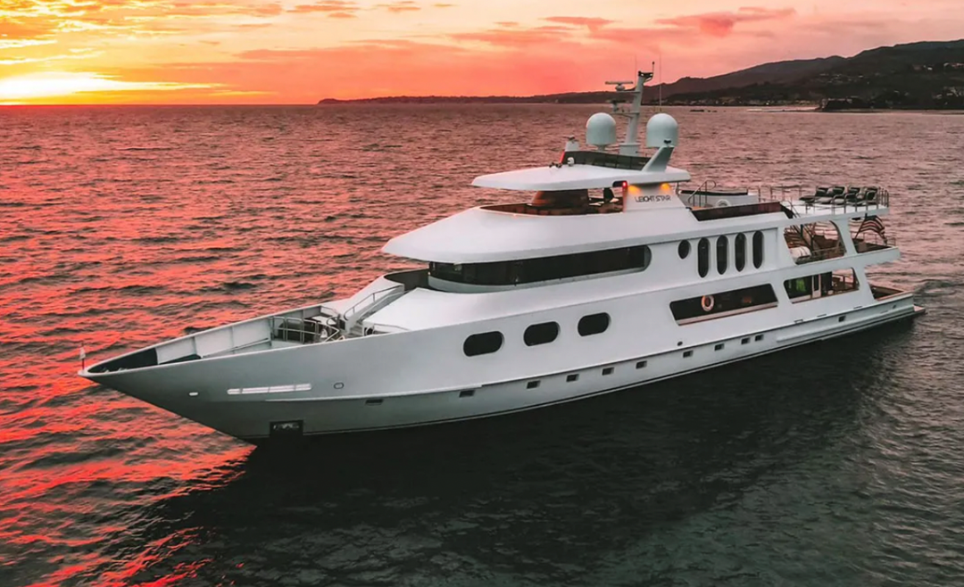 The 42.67 meter motor yacht Leight Star was featured in the Netflix docudrama Inventing Anna, based on the true story of fraudster socialite Anna Delvey. The yacht was renamed Caprilla for the episode and sees protagonist Anna Sorokin stepping out of a Chris Craft tender and onto the swim platform to join her friends in Ibiza (before outstaying her welcome). Leight Star was built in 1984 by the American shipyard Sun State. Her top deck, which is used mostly for sun lounging, can double as a helipad for guests looking to arrive in style.