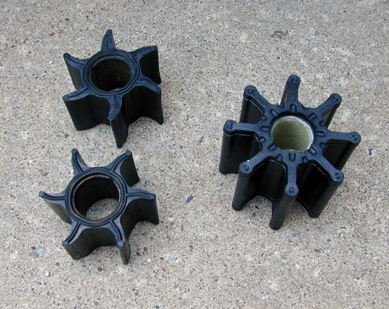 Knowing the flow amount of your exhaust water is also key to confirm problems with your cooling system—as a boat operator, you should know this by sight. Should you see any restricted flow, shut the engine down and starting at the thru-hull, work your way through the system. A ruined impeller—a major cause in many cooling system problems—can send rubber pieces into the heat exchanger. If you run gasoline engines, you most likely have cast iron risers. As these are quite prone to corrosion in salt water, make checking them part of a seasonal inspection.