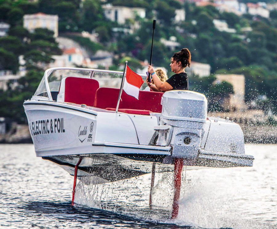 Sweden’s Candela Boats C-7 hydrofoiling electric boat took top honors at the YCM International Speed Record Race in Monaco in July, beating 14 other electric boats in a 253-yard sprint race, averaging 27.055 knots. Second went to Dinsdale Watersport, which ran more than 24 knots. The Dutch entry, Sunflare Solar Team, harnessed the sun’s power to run an average speed of nearly 20 knots and claim third place.