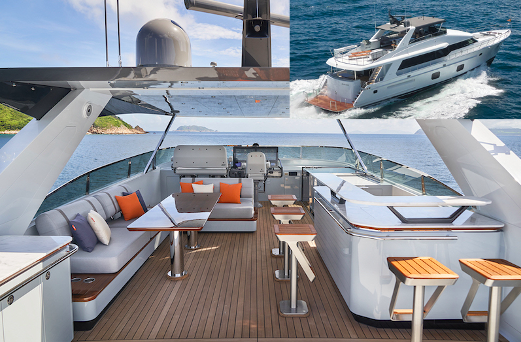 On the new CLB88 from CL Yachts, it could be argued that the flying bridge will be the most popular gathering area and there’s ample evidence to back up the assertion. First, it’s huge, taking up nearly half of the yacht’s overall length of 88’11” (27.07 m). Large L-shaped seating to port wraps around a solid wood table and just across is a full bar with five stools. Overhead, there’s a carbon-fiber hardtop. The aft boat deck has a davit for launching and retrieving a tender and, when left open, it has lots of space for deck chairs. But the question remains, how does the flying bridge hold up against the other social zones? Let’s find out. More...