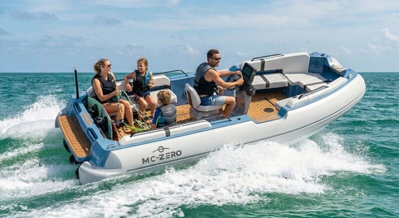 Chris Baird, CEO of MC-ZERO, says the engineers and designers started with a totally clean sheet and free rein to throw out the compromises that have had to be built-in to many fossil fuel tenders. That allowed them to create, in Baird’s words, “a boat that adapts to the user, rather than the other way around,” and one that maximizes space with smart functionality.