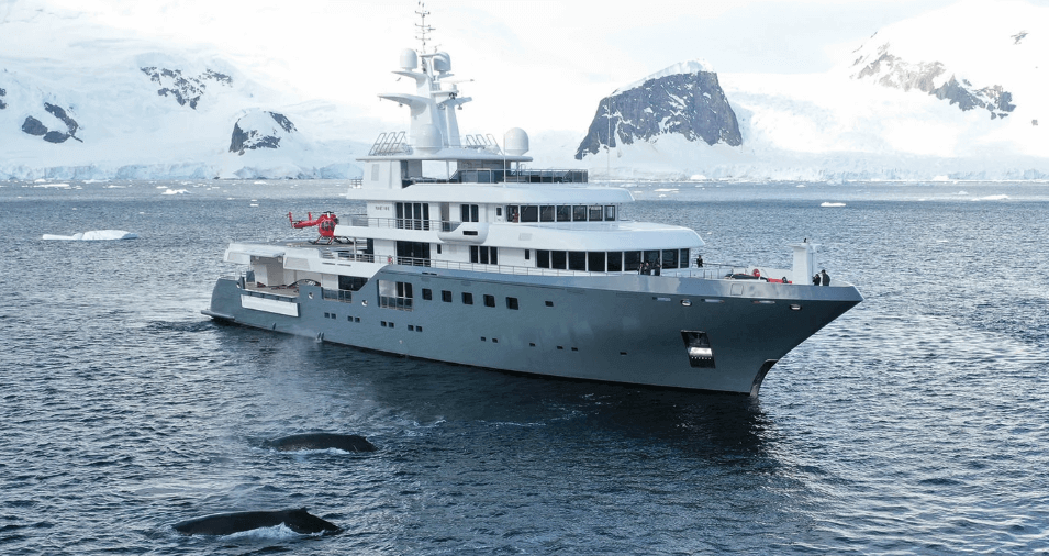 But letting go of their home on the water, he admits, could prove difficult. Aside from extended trips with the family aboard, Planet Nine has taken multiple trips with charter guests, from Antarctica to Bermuda and Cuba. Although planned for both warm and cold climates – she has a beach club as well as a “boot room” – in Antarctica she was in her element with her ice belt and helicopter.