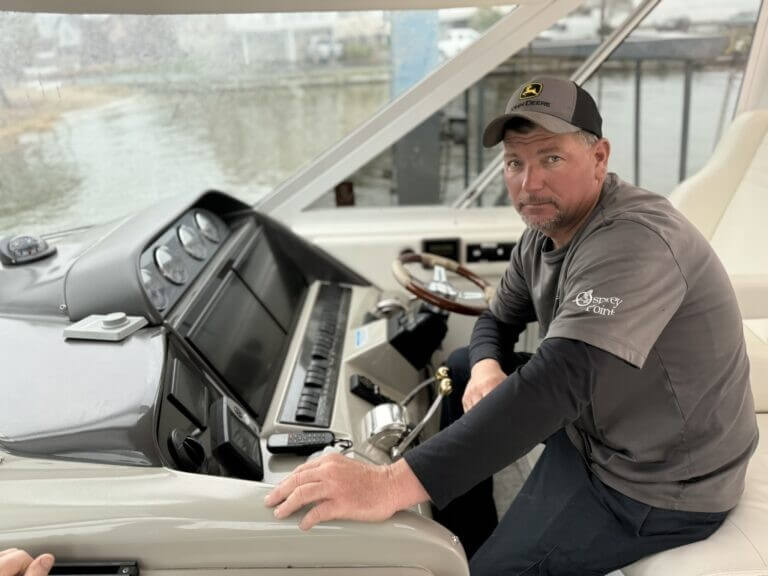 Wade Hague, service manager at the full-service Gratitude Marina, was born and raised in Rock Hall. “There are only three main industries/careers here,” he tells us. “Marina jobs, commercial watermen, or farmers.” He recalls how much larger today’s marinas are than when he was growing up, pointing to an even greater need for employees. “They’ve quadrupled in size.” Gratitude Marina is a sister company to Osprey Point Marina, which has its own restaurant and Inn, along with its slips. Nearby Haven Harbour Marina Resorts includes Haven Harbour Marina, Haven Harbour South, and the Inn at Haven Harbour.