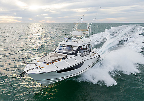 ACTIVE ADAPTATION This vessel adapts. Watch how she morphs from a sport fisher to an entertainer, then a long-range coastal cruiser. The cabin sleeps five, and storage abounds, suggesting adventures beyond a day's reach.
