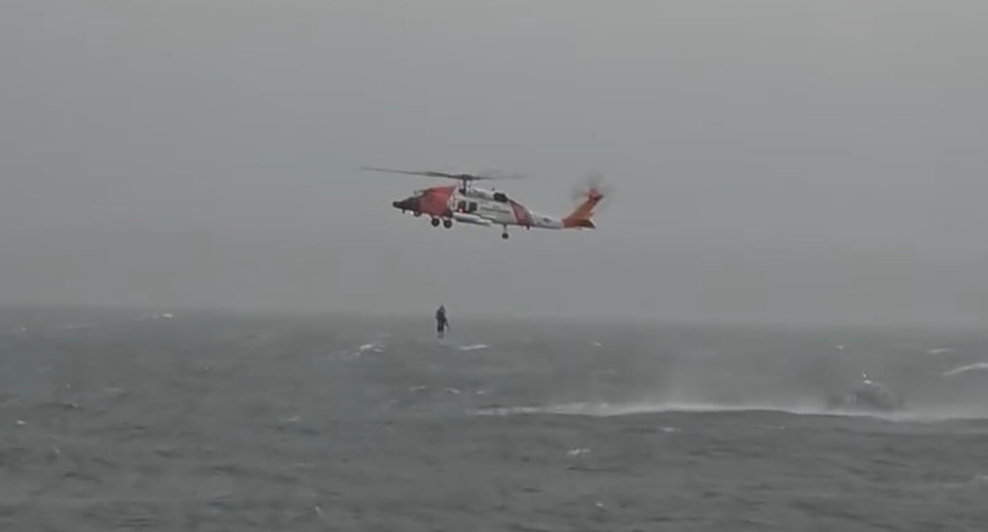 In rough, storm-tossed seas, a helicopter hoist is often the only safe way to get someone out of the water. The Coast Guard crew flawlessly executed the hoist and flew the man straight to medical care.