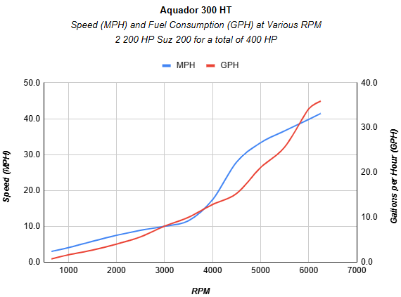 | RPM | MPH | Knots | GPH | MPG | NMPG | SM | NM | dBa |