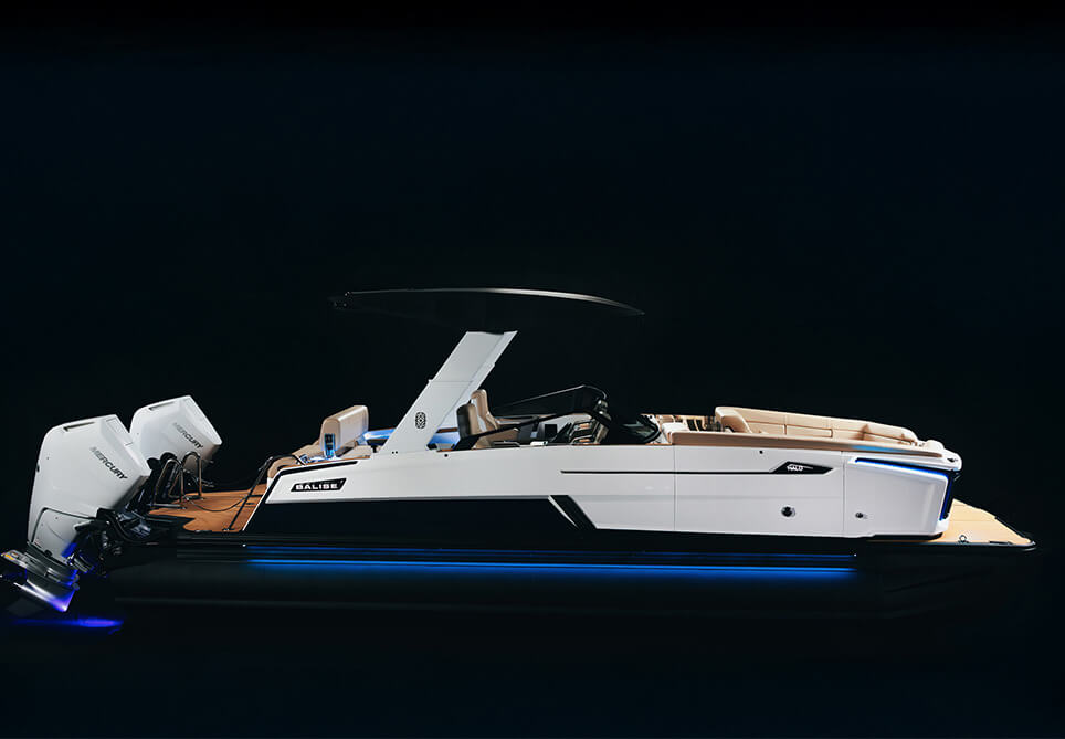 Balise has built its reputation on imaginative engineering and premium craftsmanship, and the Halo represents the next evolution of that legacy. Conceived to challenge long-held assumptions about pontoons, this 26-foot platform combines advanced construction methods with a fully fiberglass exterior, reinforced tubes, and a tuned chassis that enhances strength while reducing vibration.