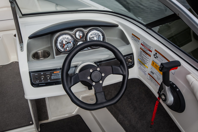 Tons of storage, a smooth ride, sporty styling and an awesome value price put the 180 in a class by itself. Its fuel-efficient standard 90 HP Mercury 4-Stroke outboard means long days on the water. Exceptional cockpit space, a helm seat with flip-up bolster and an optional water sports tow pylon keep your crew comfortable, and active. In fact the only thing more thankful than your family, will be your wallet.