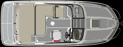 The distinct styling and space maximization of Bayliner’s VR Series has expanded into a striking new overnighter in the new VR5 Cuddy. The cabin has a berth to sleep two, and its access door has molded in steps making foredeck access easy through the split, sport windshield. In the cockpit, the boat increases the aft seating area by carrying it back to the aft most point of the running surface—then adding the swim platform. Its the kind of thinking that creates usable space of a boat up to two feet longer. Just step aboard…you’ll feel it.