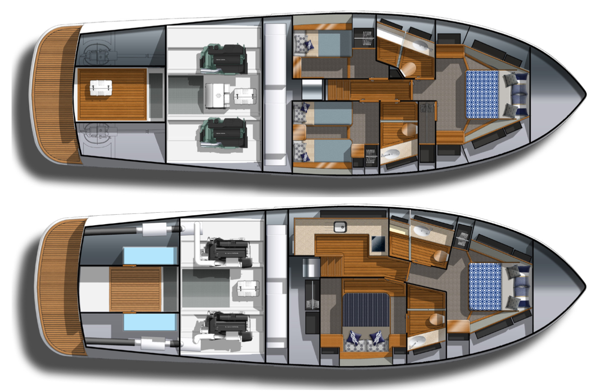 The engines on our test boat were turning straight shafts, but an IPS version is also available that should increase the fuel efficiency by another 25-30 percent, according to the builder. Of course, that will come at a higher price tag but serious cruisers that plan to put a lot of miles under the hull should benefit from that offset.