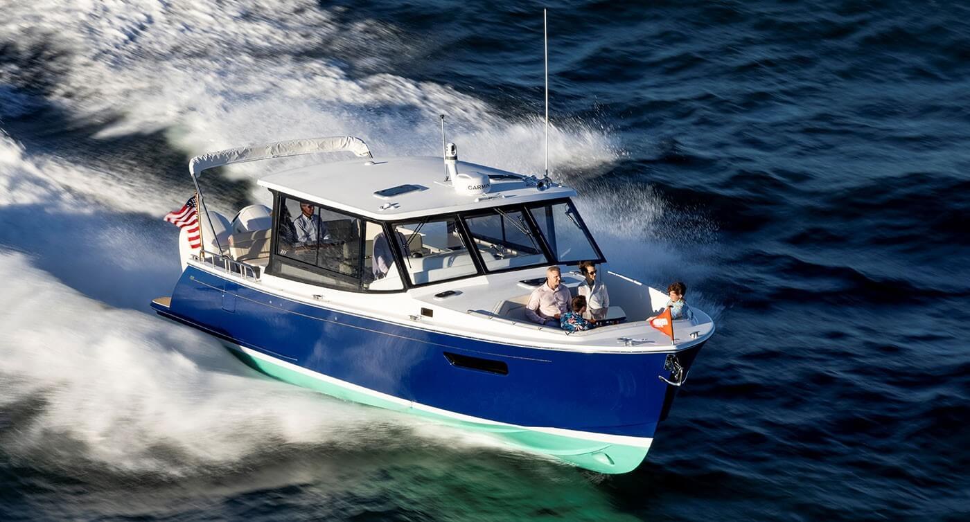- Galley-Up Layout: Positioned within the protected MJM indoor/outdoor pilothouse for convenience and connection.