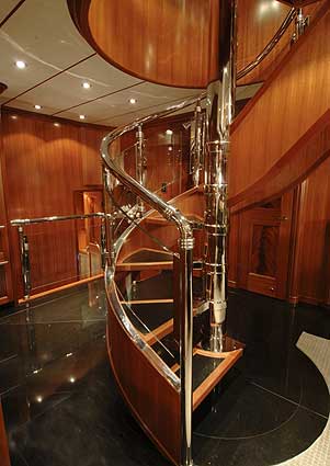 Aft stairway to crew cabins and engine room