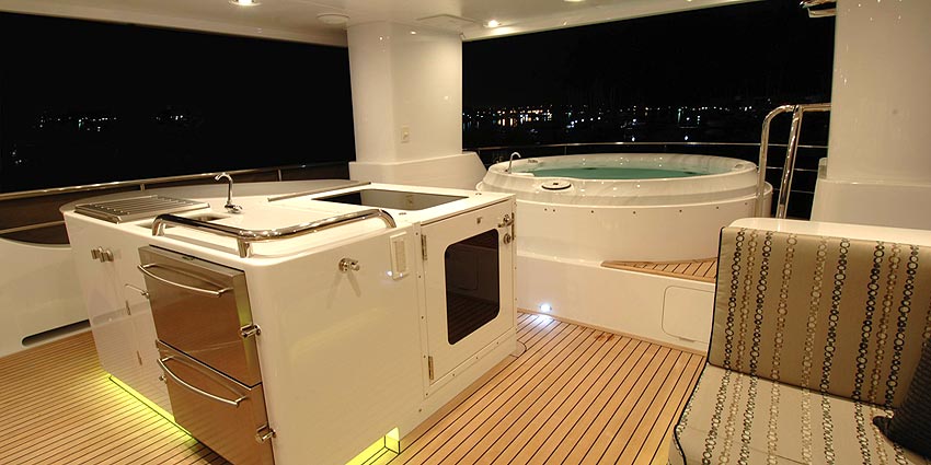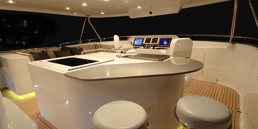 Building on the experience of hundreds of thousands of ocean crossing miles and applying the “form follows function” rule, this ultimate offshore passagemaker has been designed in an aft wheelhouse configuration. For comfort and visibility at sea, this arrangement cannot be beat and with her long foredeck, tenders up to 20 feet can be accommodated.