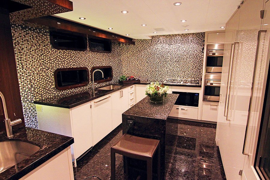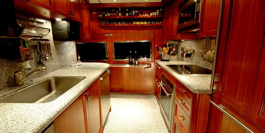 - Shelves: Longitudinal plywood shelves with 5″ (12.7 cm) fiddles provided port and starboard for storage
