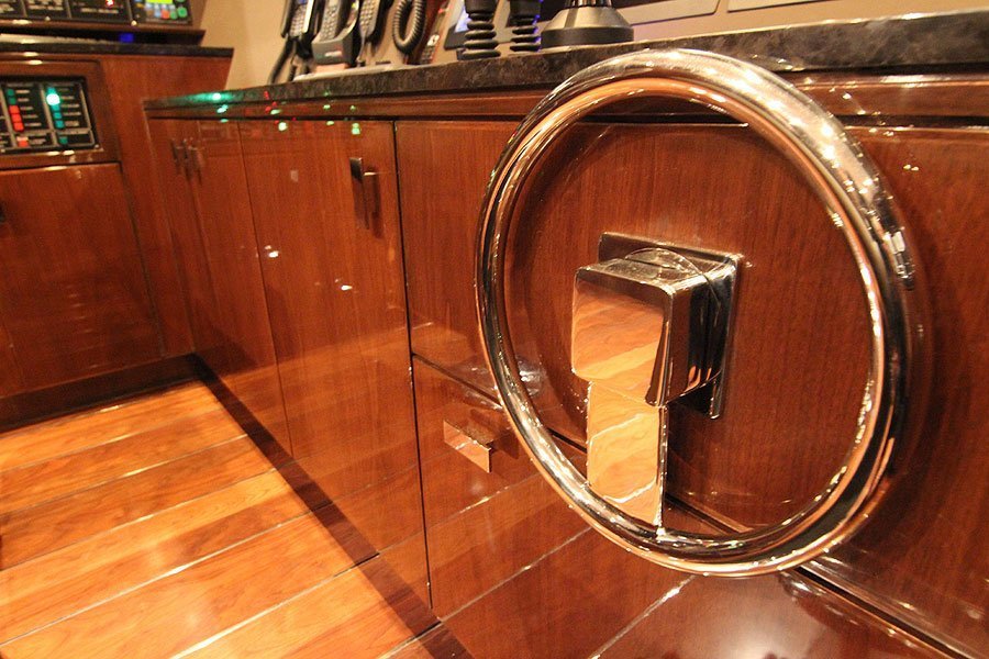 - Salon tables, pilothouse table to be varnished with high gloss varnish