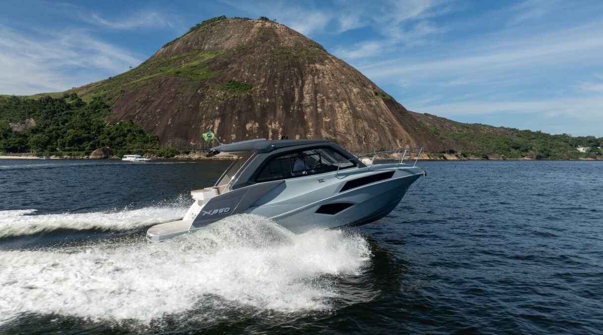 On deck, wraparound lounges, integrated audio zones, stainless steel accents, and tinted safety glass create a contemporary setting. Beneath the seating, dedicated compartments keep gear organized, while an 80-liter cooler supports full days outdoors. The helm features an integrated control panel with GPS, VHF radio, USB connections, and a custom wheel. Power comes from twin outboards rated up to 2 x 400 hp, and the shallow draft allows operation in skinny coastal waters. Safety equipment includes fire extinguishers, 12V blowers, and a retractable ladder at the stern. Buyers can personalize hull color, finishes, propulsion, and selected add-ons.