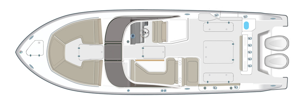 The DC 326 features a fully integrated fiberglass hardtop with tempered glass windshield, thoughtfully designed storage and starboard hull side door - all with the distinctive aesthetic of Pursuit’s Dual Console series.