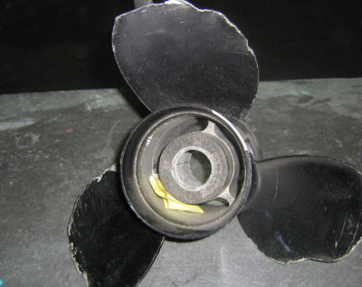 You are looking at a prop that is damaged from a rock in a river. Believe it or not this prop can be put back into top condition.