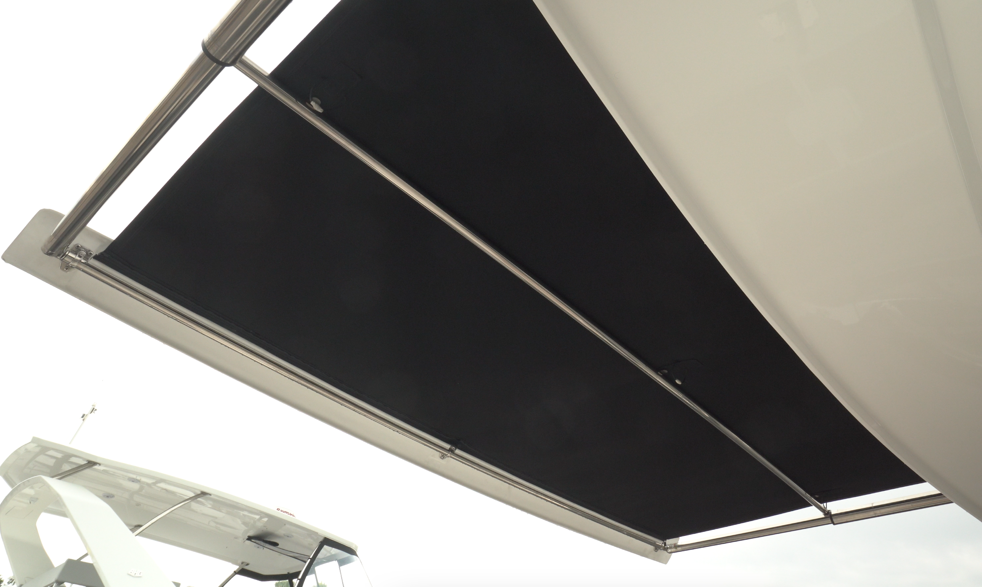 The opening between the windshield is 22” (55.88 cm) wide and because it’s fairly large, Aquila uses a securing latch to hold it in place instead of a magnetic catch. The lower half of the passageway closes with an air dam.