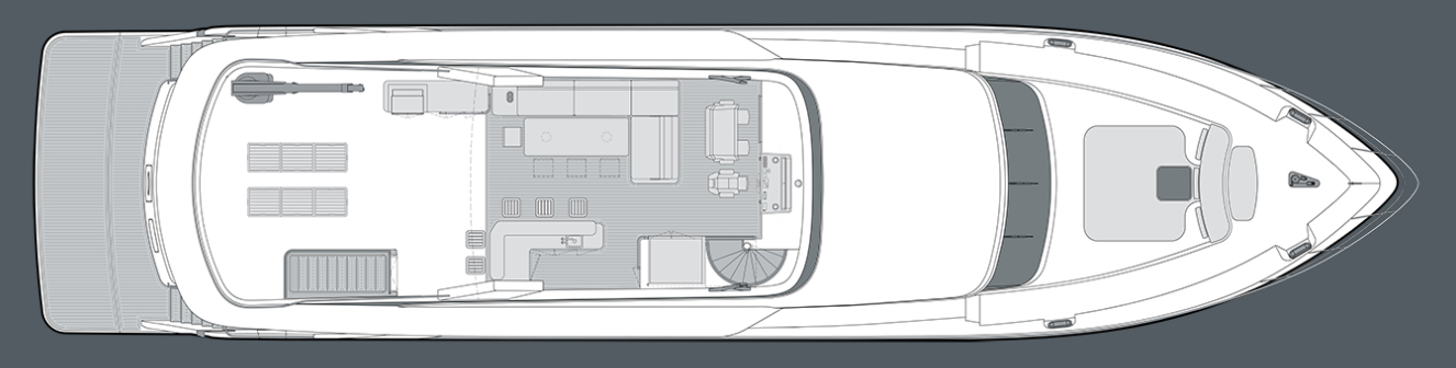 - Beach platform that can handle additional toys such as jets ski plus davit on the flybridge for tender storage – allowing multiple toy options in two separate locations.