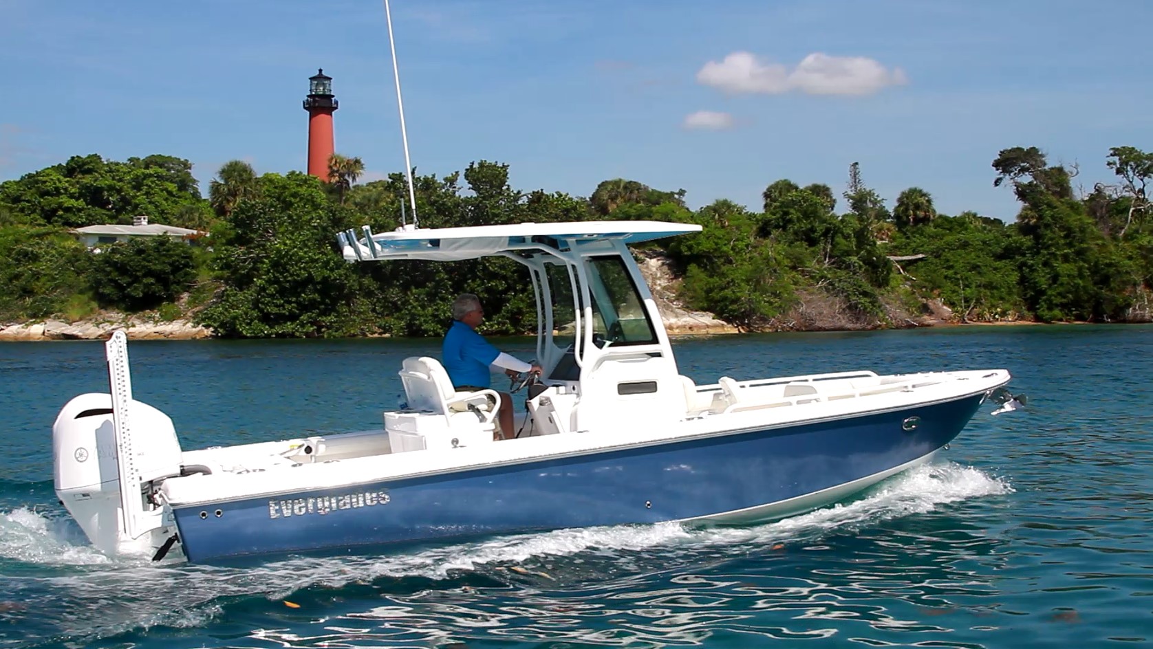The Everglades 253CC is a solid boat. There was no rattling, it cut through waves nicely and was responsive to the helm. It also cornered without ventilation and provided a dry ride.