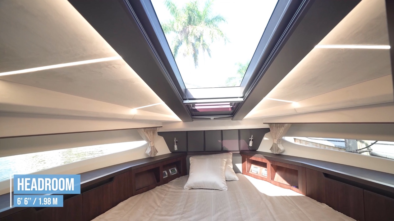 The ventilation is extremely comfortable in this boat. Of course, there’s the full aft bulkhead being open. There’s a full-opening sunroof and two opening side windows. And let’s be clear on the benefits of “manually opening” windows because if they were electric, it's something that may fail three to five years down the road.