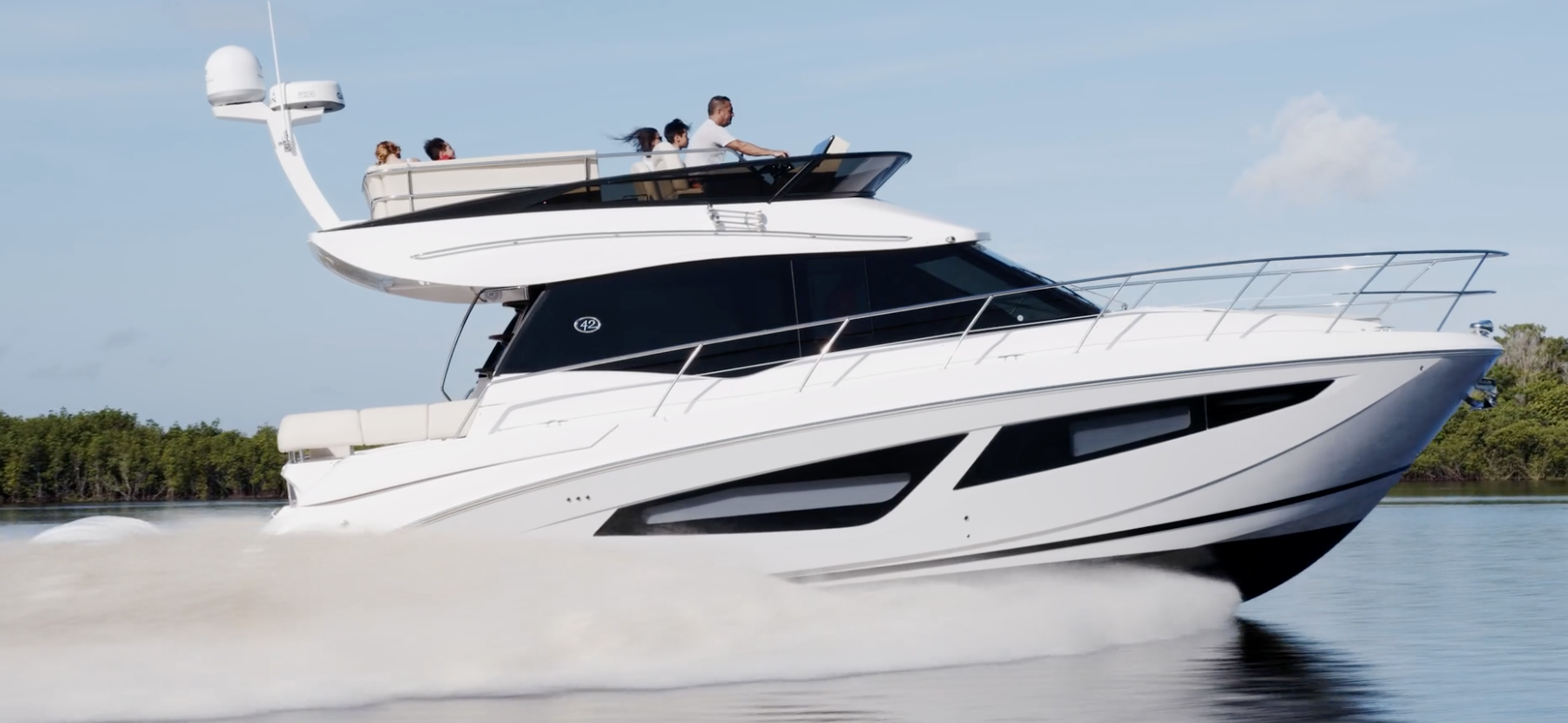 Regal Marine designed the 42 FXO for triple outboards to make her a more versatile boat for families who want to hang out at the sandbar or cruise the local waterways. She has a large flying bridge and cockpit, which blends seamlessly with the salon thanks to clever door design. Her accommodations deck has attributes found in larger yachts including an atrium and a refreshment center.