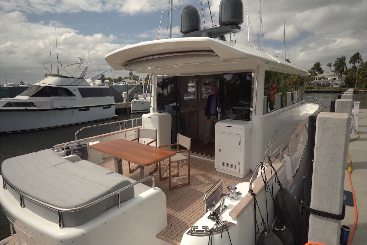 We can further increase the shade by bringing out a retractable SureSHADE awning. I like that there are boarding gates to both sides of this aft deck, so it doesn’t matter which side we have the dock on.