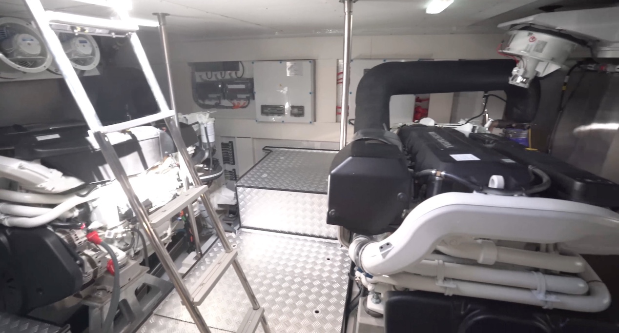 Upon entering, my first impression was that the engine room was a lot bigger than it needed to be but that was because this owner didn't stock it with everything that could go in here. Items such as a second generator, a dive tank compressor, extra air handling system, a fuel polisher, a watermaker, a water filtration system… the list goes on and on. So there's more room than we would normally see in an engine room. And to be honest, I kind of like it.