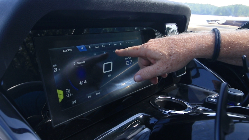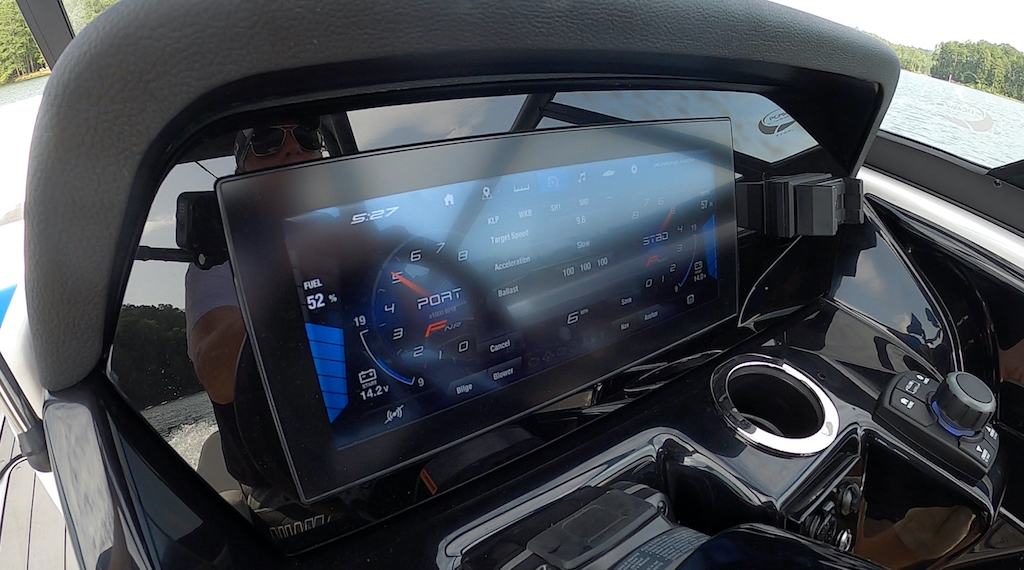 The Helm on this year’s model of the 212XD comes standard with Yamaha’s patented Connext 12.3" (31.24 cm) touchscreen display that can also utilize joystick control. This controls most of the boat's electrical functions. With the Connext touchscreen, the driver can read the water temperature, RPM levels, fuel gauge, GPS location, depth, trip information, and even display a nautical chart. The captain can also control all the boat's functions such as ballast tanks, speed control, Bluetooth, courtesy, and docking lights all through the Connext unit. When using the display for watersports, it can store up to five profiles when it comes to their wake, speed and acceleration preferences.