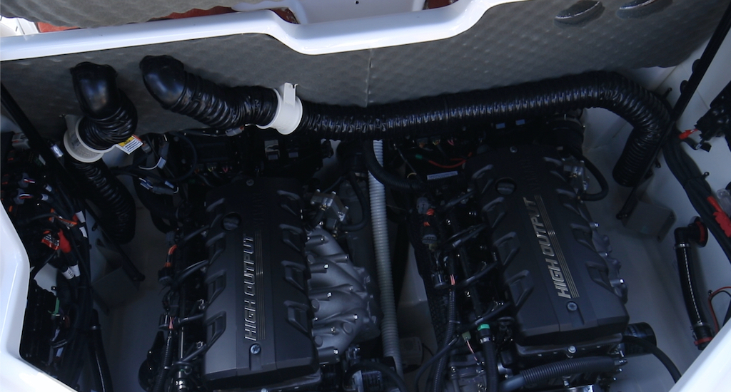 With Yamaha's twin 1.8 L High Output engines, the 212XD is a powerful boat with the capability to not only carry a lot of family and friends but also hold filled ballast tanks and tow someone at the same time. This jet drive boat easily came up to plane and reached its best cruising speed (and time). She also reduced noise levels thanks to her sound dampening hull and engine compartment that creates a quiet ride, easily allowing conversations even at cruising speed.