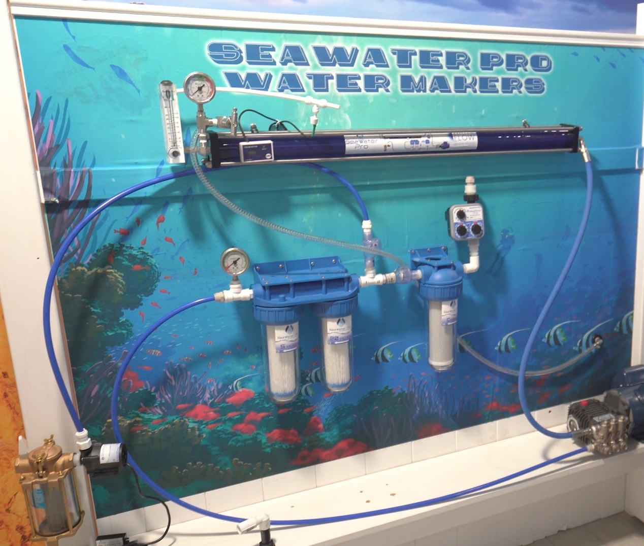 Well, it doesn’t have to be that way anymore. SeaWater Pro is a company in Fort Lauderdale, Florida that took a stand and said, “this ends today” and did something about it. Now, owners of “less than yacht quality” boats can have an actual watermaker that doesn’t cost the typical $20,000 and it can be installed by the owner! Interested? We certainly were when we first saw them.